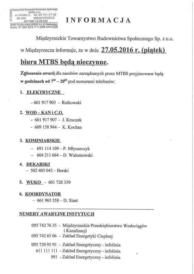 Wszelkie uwagi dot. oferty prosimy zgłaszać do tutejszego Urzędu: tel. 95 7426980 lub pocztą elektroniczną eizydorczyk~@~miedzyrzecz~.~pl