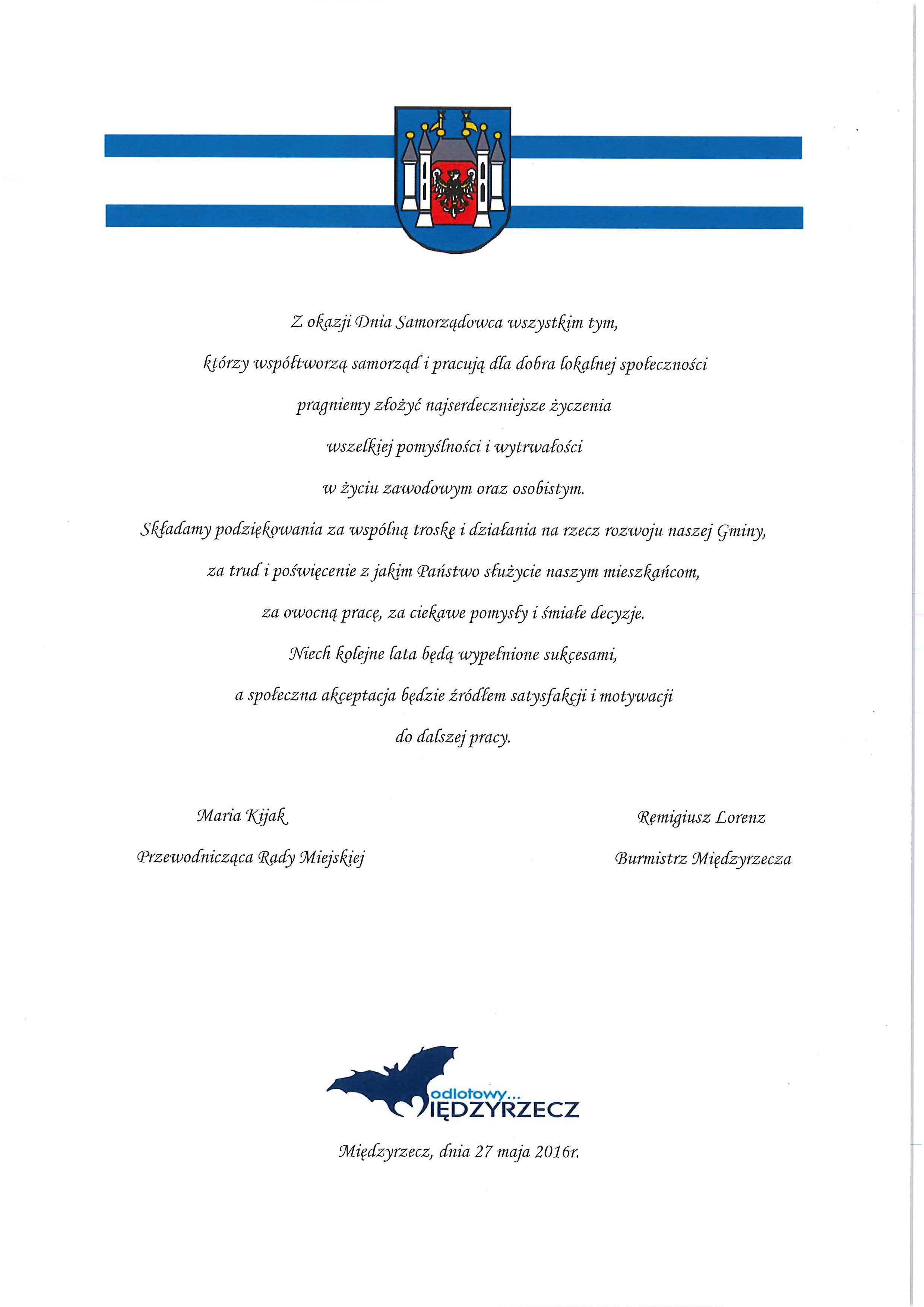 Życzenia z okazji Dnia Samorządowca