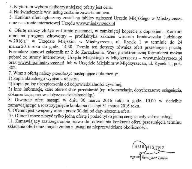 Rozstrzygnięcie otwartego konkursu ofert na realizację zadań publicznych na terenie gminy Międzyrzecz w 2016 r.