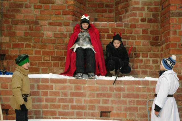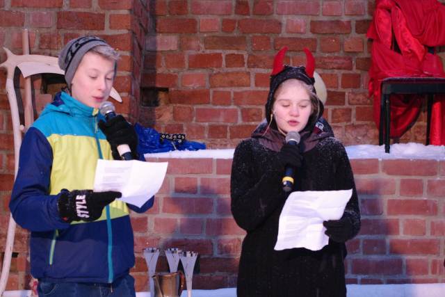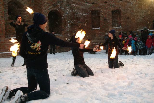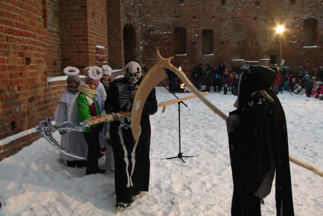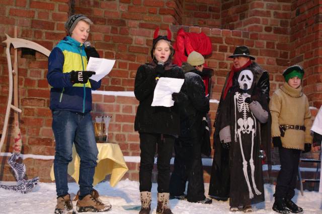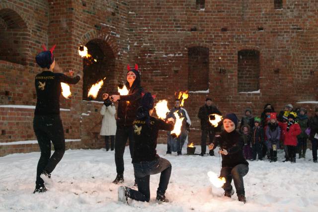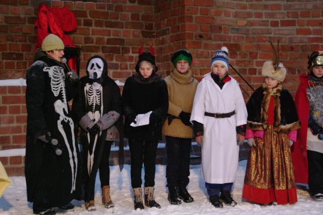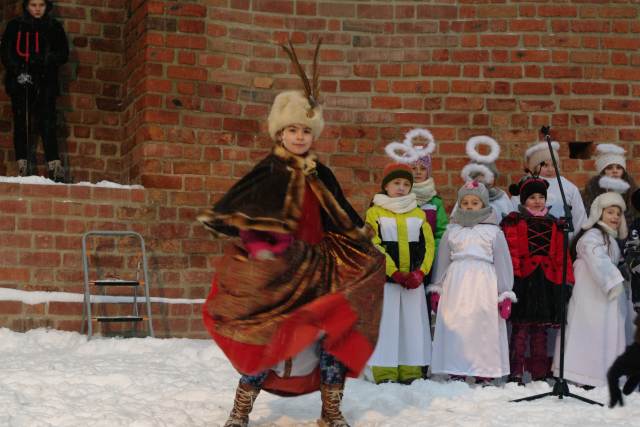 Świętowanie rozpoczęło się na zamku, gdzie po dotarciu do miejsca trzech króli: Kacpra z parafii pw. św. Jana Chrzciciela, Melchiora z Sanktuarium Pierwszych Męczenników Polski i Baltazara z parafii pw. św. Wojciecha, młodzi aktorzy ze Szkoły Podstawowej nr 2 im. Szarych Szeregów przedstawili scenę jasełek z królem Herodem. Licznie zgromadzonych mieszkańców powitał burmistrz Remigiusz Lorenz, który wyraził swoją radość, że to właśnie Międzyrzecz znalazł się wśród kilkuset miast w Polsce, w których odbył się Orszak Trzech Króli. Burmistrz życzył wszystkim radosnego świętowania i wspólnego kolędowania w gronie rodziny i przyjaciół.