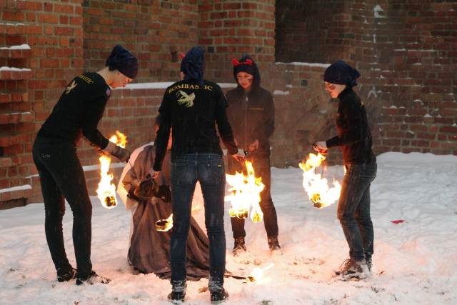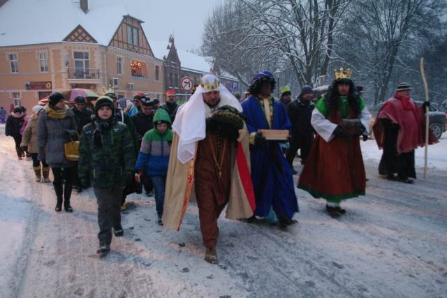 Wspaniały pokaz tańca z ogniem zaprezentował zespół Bombastic z Bukowca, po którym barwny orszak wyruszył ulicami miasta, by dotrzeć do szopki w kościele pw. św. Jana Chrzciciela. Tam, trzej królowie pokłonili się Dziecięciu i złożyli dary. Zwieńczeniem świątecznego orszaku była uroczysta msza św., którą poprowadził biskup pomocniczy senior diecezji zielonogórsko-gorzowskiej Paweł Socha.