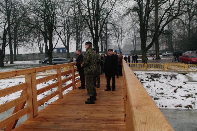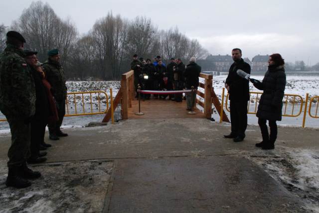 W poniedziałek 11 stycznia dokonano oficjalnego otwarcia nowo wybudowanej kładki przez rzekę Obrę. Biało-czerwoną wstęgę przeciął burmistrz Remigiusz Lorenz, starosta międzyrzecki Grzegorz Gabryelski, przewodnicząca Rady Miejskiej Maria Kijak, dowódca 17. WBZ płk Piotr Malinowski, dowódca JW 3444 Głogów ppłk Adam Kliszka oraz Paweł Strzelczyk z firmy Instalko. Przemawiając do zgromadzonych gości i mieszkańców miasta, burmistrz podkreślił jak ważna była to inwestycja, szczególnie dla mieszkańców prawobrzeżnej części miasta. Wyraził swoją radość, że w tak krótkim czasie powstała solidna konstrukcja, która będzie służyła przez lata.