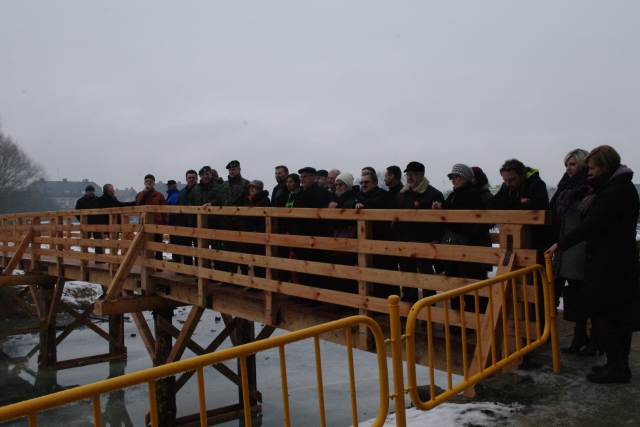Kładka wybudowana została przez saperów z 4. Batalionu Inżynieryjnego z Głogowa, których podczas otwarcia reprezentował ppłk Adam Kliszka. Burmistrz serdecznie podziękował za zaangażowanie, pomoc oraz dobrą współpracę. Słowa wdzięczności skierował również do wojewody Katarzyny Osos i starosty Grzegorza Gabryelskiego, którzy poparli starania burmistrza.