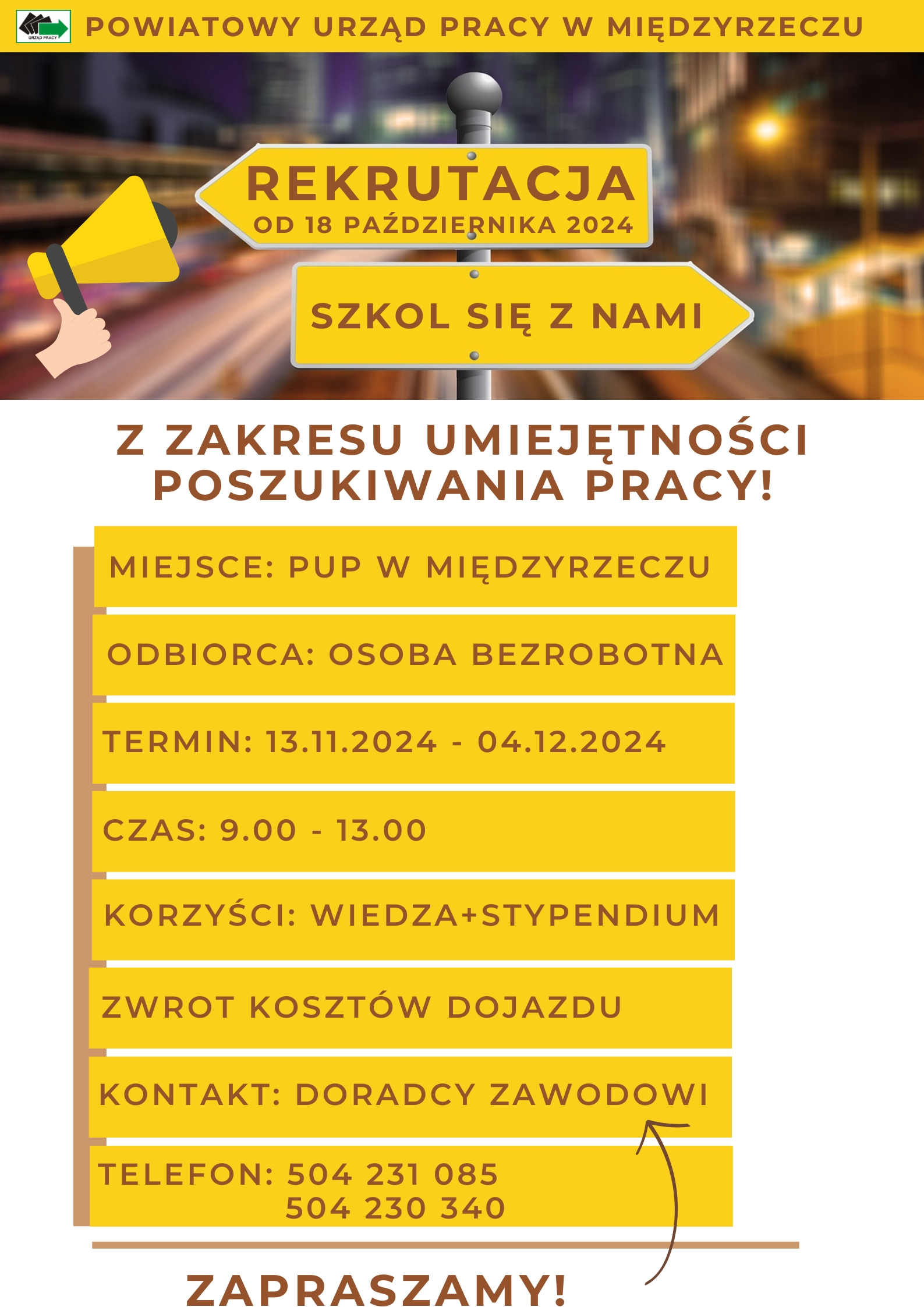 Powiatowy Urząd Pracy w Międzyrzeczu zaprasza osoby bezrobotne na cykl szkoleń z zakresu umiejętności poszukiwania pracy.