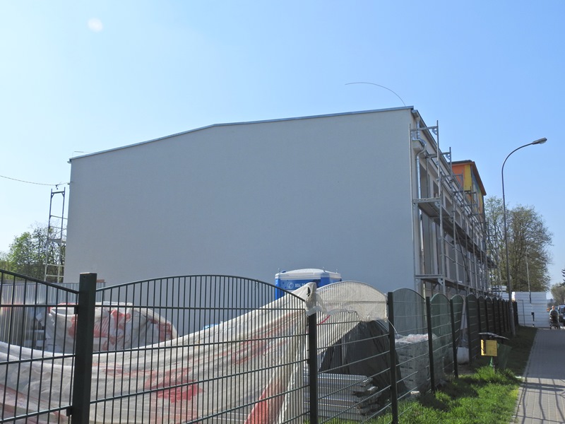 Zakończono prace związane z wykonaniem docieplenia oraz malowania ścian sali gimnastycznej i łącznika. Obecnie trwają prace związane z wykonaniem docieplenia ścian budynku głównego szkoły. Ponadto przystąpiono do demontażu grzejników wewnątrz całego obiektu w celu ich wymiany na nowe.