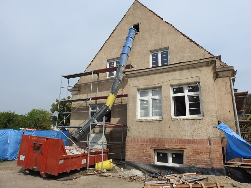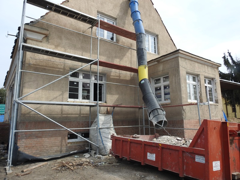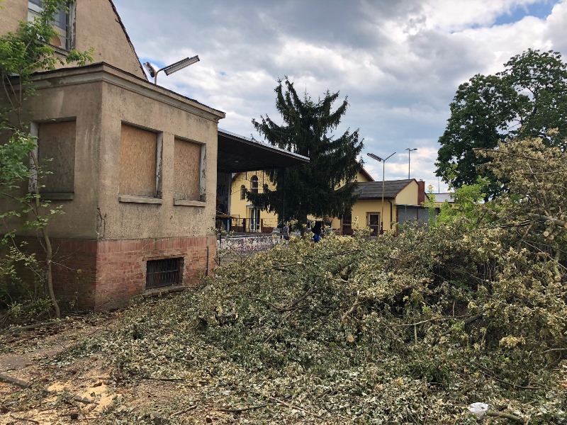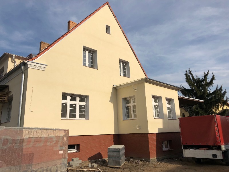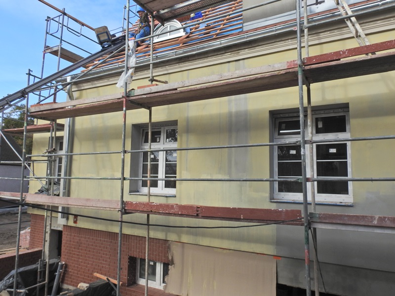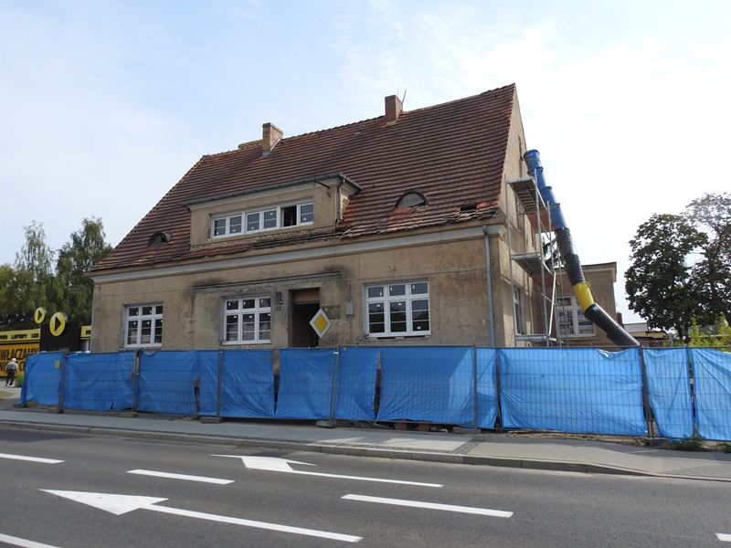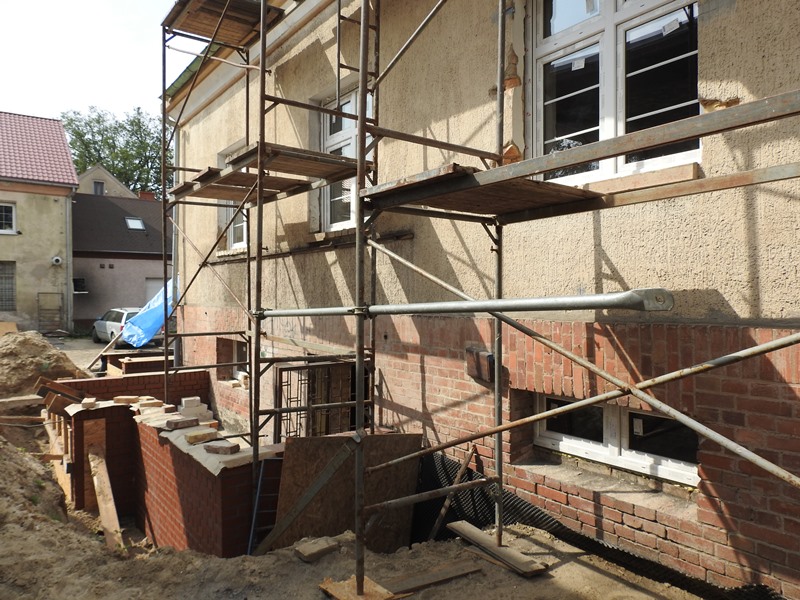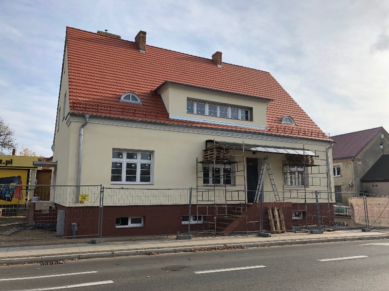 W wyniku rozstrzygnięcia przetargu nieograniczonego podpisano umowę z Wykonawcą na realizacje przedmiotowej inwestycji. Obecnie wykonano wycinkę drzew, zdemontowano stolarkę okienną. Dokonano odkrycia ścian fundamentowych w celu wykonania izolacji przeciwwilgociowej. Obecnie przystąpiono do robót ogólnobudowlanych wewnątrz budynku.